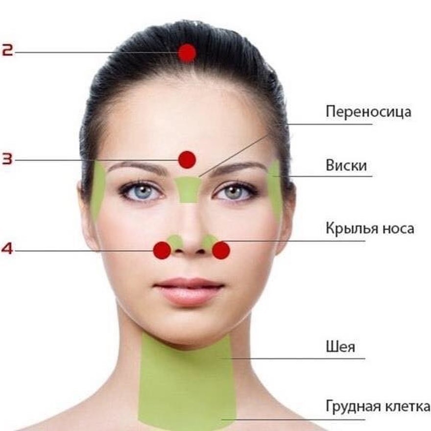 4) При ощущении тяжести в голове, что часто сопровождает простудные заболевания, поможет массаж точки между бровями, а также круговые движения пальцев на висках.