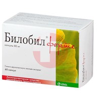 Препарат Билобил® форте растительного происхождения. Увеличивет устойчивость организма к гипоксии, особенно тканей головного мозга. Тормозит развитие травматического или токсического отека головного мозга, делает лучше мозговое и периферическое кровообращение, делает лучше реологию крови. Оказывает дозозависимое регулирующее воздействие на сосудистую стенку, расширяет мелкие артерии, увеличивет тонус вен.
